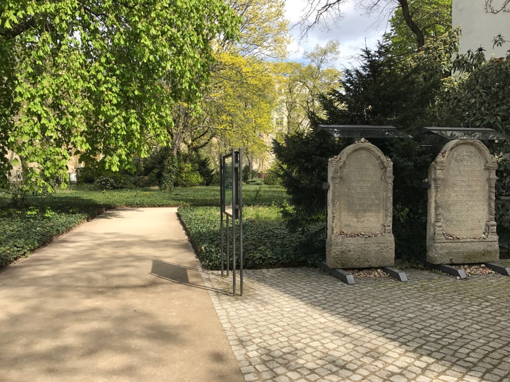 We live next door to a Jewish school that used to be a home for elderly Jews. But the Nazis turned it into a Jewish deportation centre with the majority ending up at Auschwitz. Next to that building is a Jewish cemetary. It used to be the oldest in Berlin, until the Nazis ransacked it. Now it’s become a memorial garden.